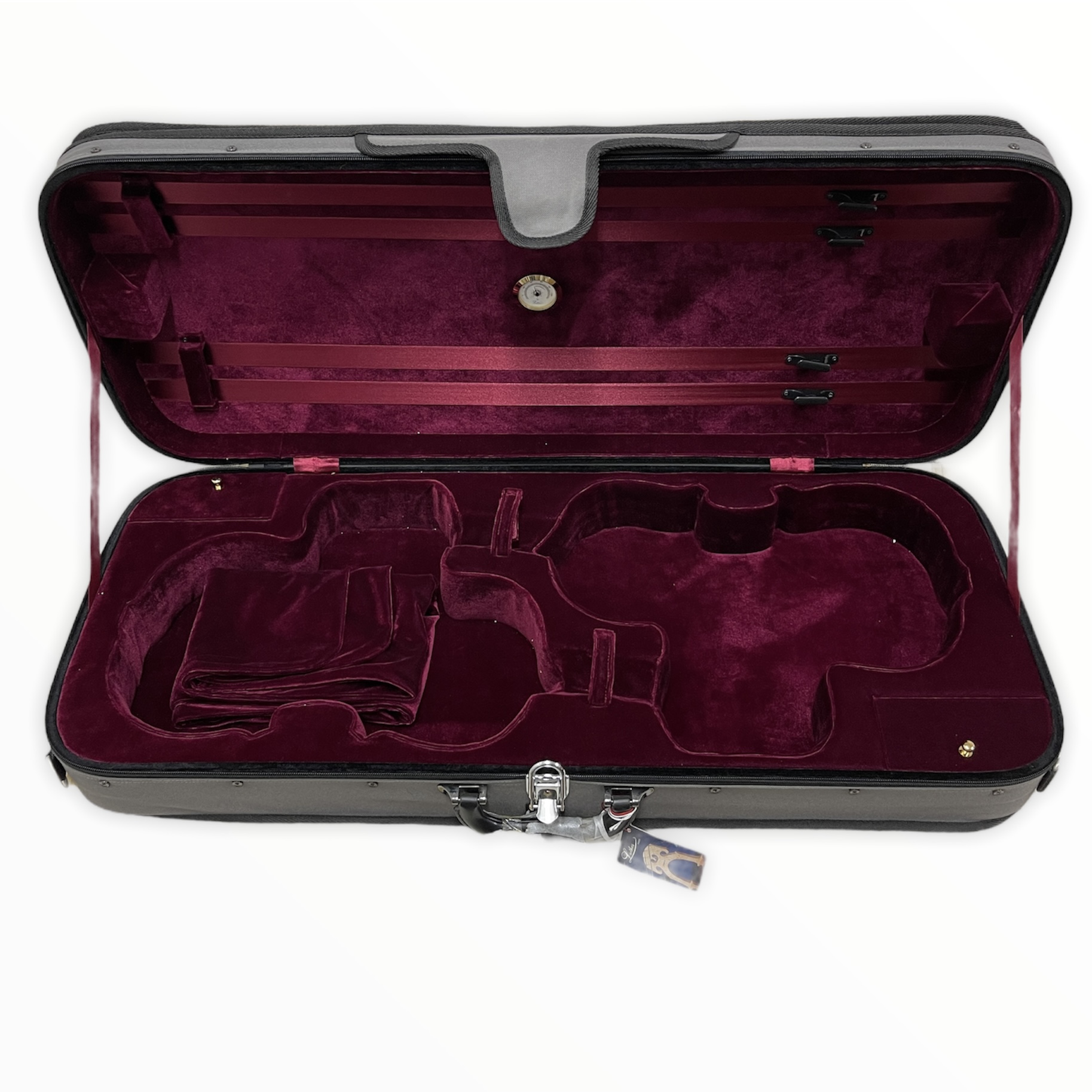 Extremely compact case in light wood for two violins, exterior in Grey Exterior, Grey Interior nylon fabric